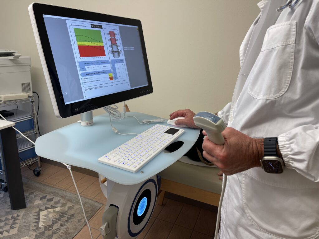 Il paziente viene sottoposto a una scansione ecografica sui siti ossei di riferimento, in un contesto ambulatoriale confortevole e sicuro.
